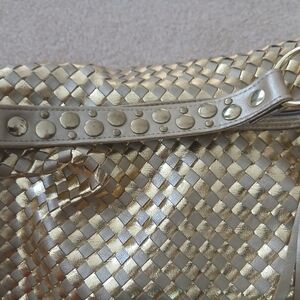 Bisou Bisou Michele Bohbot Metallic Gold Woven Weave Hobo Purse Handbag Y2K GUC