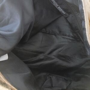 The bag features a zipper closure, tassle accent and pockets for added convenience. The bag's measurements are included in the photos for your reference. This medium-sized handbag is a great addition to any outfit, whether you're going to work or out for a night on the town.