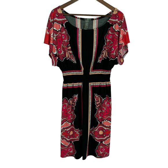 Bisou Bisou Michele Bohbot Pink Black Floral Smocked Waist Dress Women's 12
