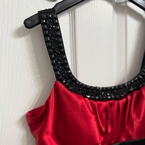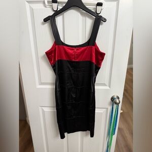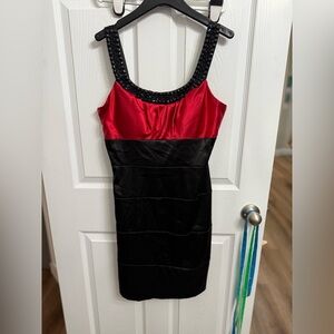Bisou Bisou Michele Bohbot Red Black Satin Bodycon Party Dress Size 12 Studded