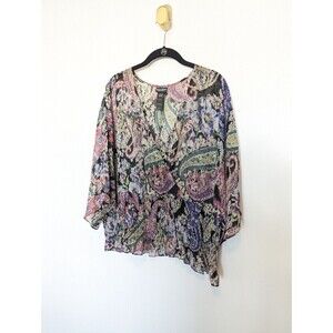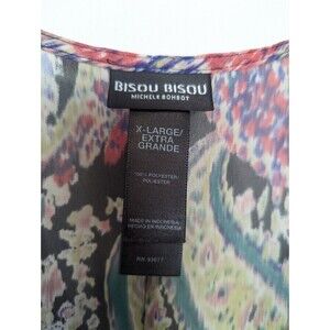Bisou Bisou Michelle Bohbot Blouse Womens Size XL Multicolor Smocked Sheer Top