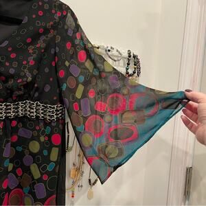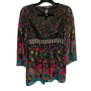 Bisou Bisou Michelle Bohbot Flowy Bell Sleeve Multicolor Top Blouse size XS