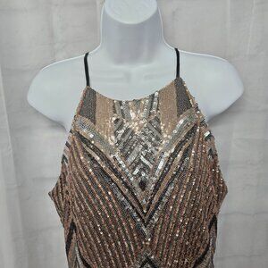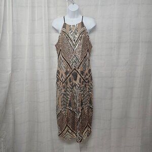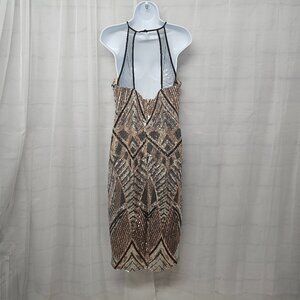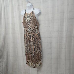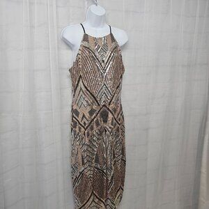 Bisou Bisou Michelle Bohbot Sequin Midi Dress Brown Silver Formal Bling 16