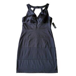 Bisou Bisou Bandage Bodycon Dress NWT Black Satin Sexy Classy Cocktail Party Size 10
