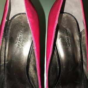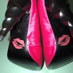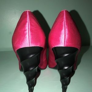 Only worn once Hot Pink, satin, peep toe heels with spiral (corkscrew heel)