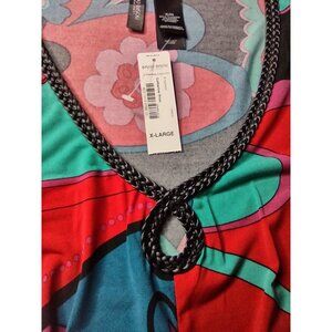 Bisou Bisou Red Floral Catherine Print Babydoll Top Size XL NWT