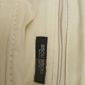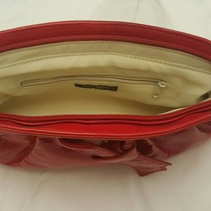 Bisou Bisou shiny red textured clutch purse. In like new condition, never used but have had in my purse stash just waiting its turn. Zipp's across the top for complete closure, has one small inside pocket as well as a wrist strap/handle.