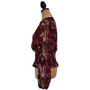 Bisou Bisou Red and Brown Wrap Blouse Long Sleeve