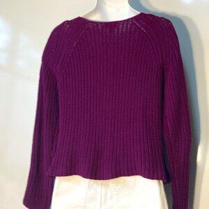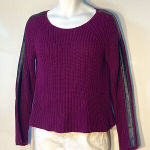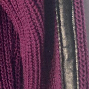 Bisou Bisou SZ L Purple chunky weave sweater with Faux Leather trim detail