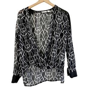 Bisou Bisou Semi Sheer Faux Wrap Top