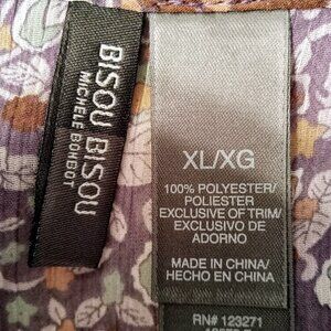 Sheer boho top with lace accents and ruffled neckline from Bisou Bisou in shades of purple, tan, brown and mint green.