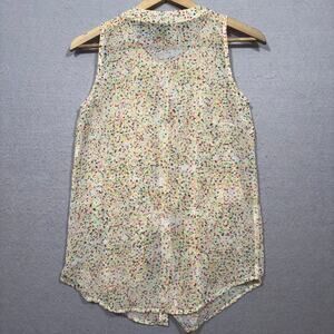 Bisou Bisou Sheer Sleeveless Multicolor Floral Ruffle Blouse XS Flowy Boho Y2K