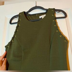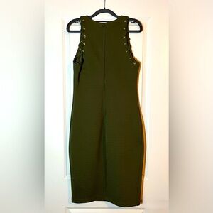 Bisou Bisou | Sleeveless Grommet Shoulder Bodycon Dress in Olive Green Size 8