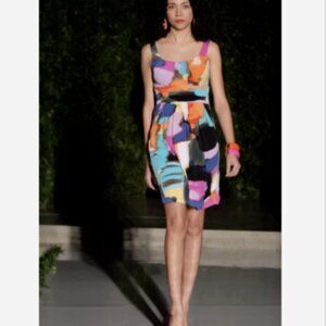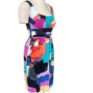 Bisou Bisou Sleeveless Sheath Dress Sz 4 Abstract Watercolor Print Pockets 217J