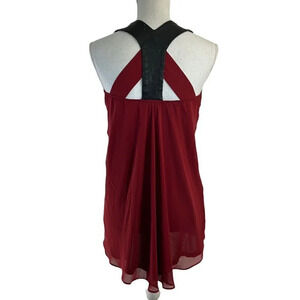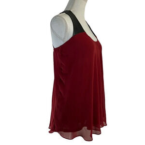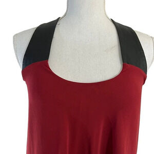 Bisou Bisou Top Red Flowy Tank Faux Leather Thick Straps Halter XS Blouse