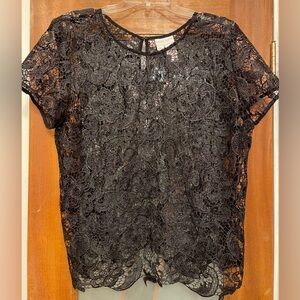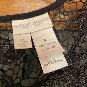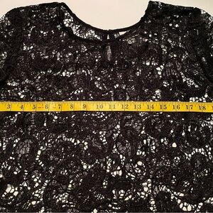 Bisou Bisou Women Black Crochet Mesh Lace SS Blouse Top Shirt XL