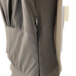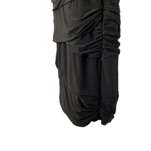 Bisou Bisou Womens Black Drapped Midi V-Neck Rouched Dress – Size 6 – Brand New!