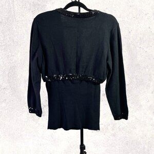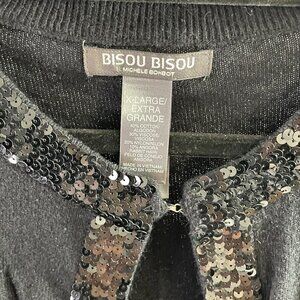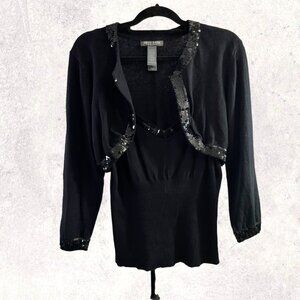 Bisou Bisou Womens Black Sequined V-neck Halter Top Cropped Sweater Set Size XL