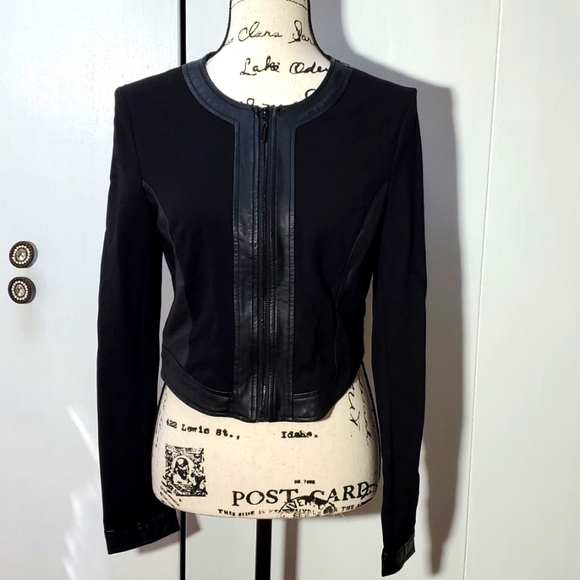 Bisou Bisou- Womens Black mixed Media Cropped Faux Leather jacket Sz.Small