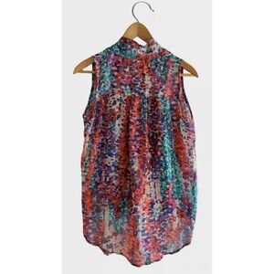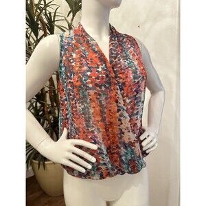 Bisou Bisou Womens Cami Tank Top Blouse Wrap Front Sleeveless Sz Small Colorful