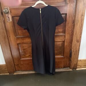 Elegant and flattering Little Black Dress by Bisou Bisou Michele Bohbot. Features a wrap front silhouette, side ruching, and stylish asymmetrical hemline. Great for cocktail parties, work, or evening outings.