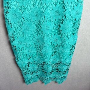 Bisou Bisou Women’s Guipure Lace High Neck Floral Dress Size 4 Teal Blue Party
