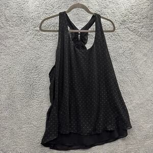 Bisou Bisou Women's Large Black Tank Top Polka Dots Frilly Racer Back Evening