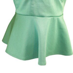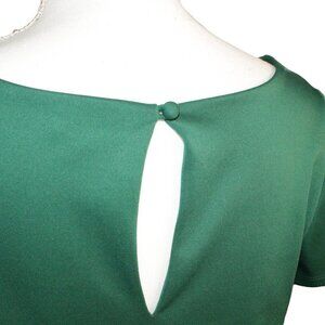Bisou Bisou Women’s Medium Green Satin Look Flare Bottom Short Sleeve Blouse