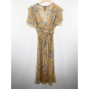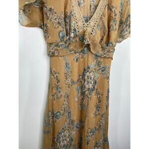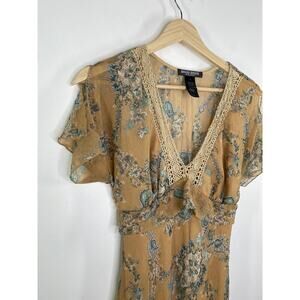 Bisou Bisou Y2K 90s Babydoll Maxi Dress Tan Floral Print Feminine Women Size 8