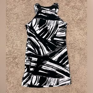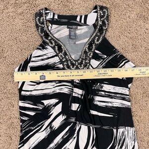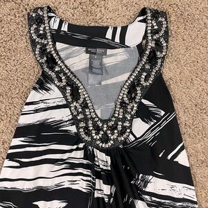 Bisou Bisou Black & White Sleeveless Beaded Neckline Geometric Short Mini Dress