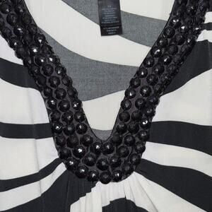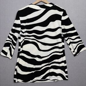 Bisou Bisou Zebra Print Blouse 14 Beaded Neck Glam Rock Bold Statement Top