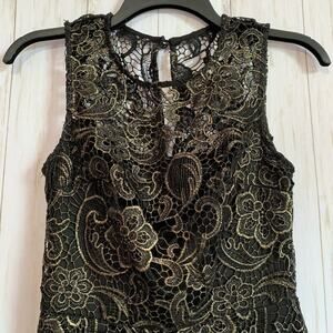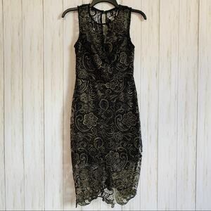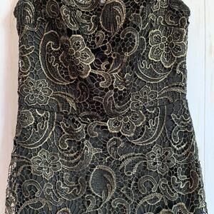 Bisou Bisou black and gold lace overlay sheath dress size 2 romantic feminine