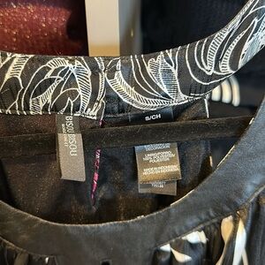 Bisou Bisou black with pink flowers smocked waist sleeveless top size S