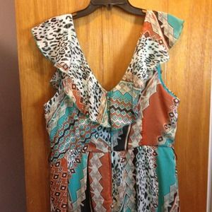 Multi pattern turquoise Bisou Bisou dress. Worn one time! Very curve flattering! Sleeveless with zip up back. Price is negotiable! 💋