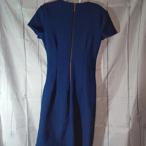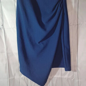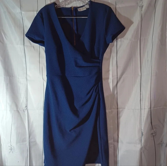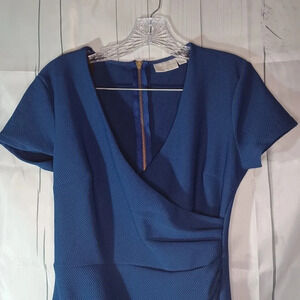 Bisou Bisou v-neck faux wrap asymmetrical blue dress