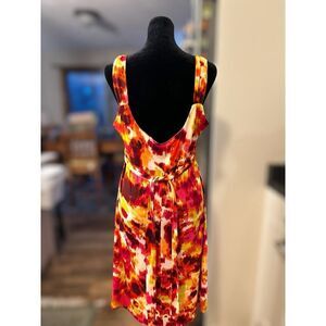 Bisou Bisou Dress Women Size 14 Sleeveless Bead Embroidered Tie Belt Colorful Body Con