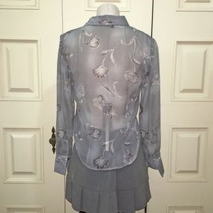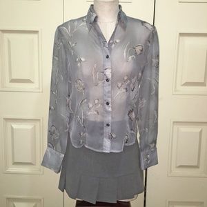 Bisou Jeans Gray Sheer Button Down Collared Blouse