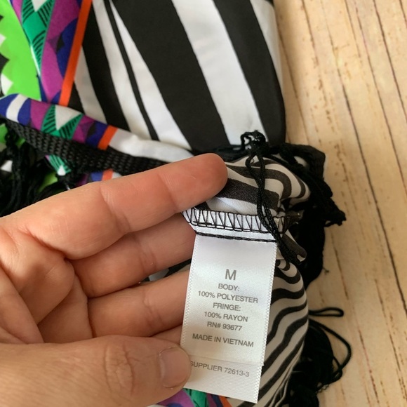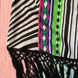 Bisou bisou fringe flowy tank top. Size medium. In great preowned condition. 100% polyester with no stretch. Adjustable straps. Measurements Pit to pit 19 inch Length 19 inch