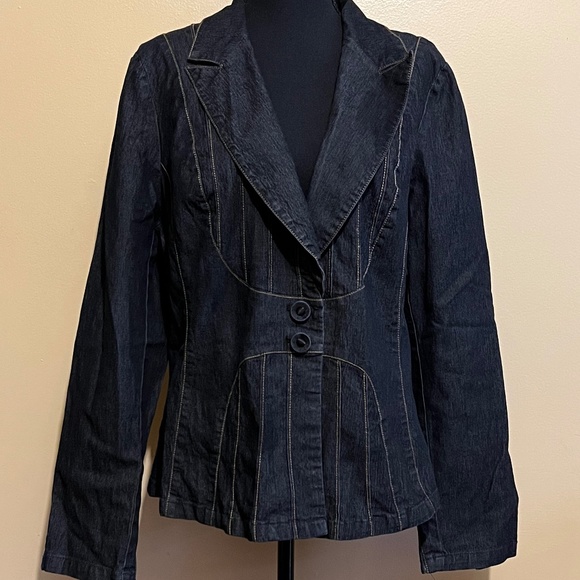 stretch Denim jacket and skirt set. Smoke and Pet free home.