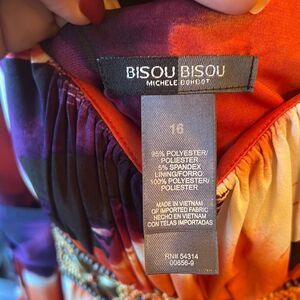 Elegant and vibrant Bisou Bisou Michele Bohbot dress in a multicolored floral print with intricate beading detail. Knee-length with a flattering silhouette. Perfect for special events, cocktail parties, or date nights. Size 16. Excellent preowned condition—see photos for details.