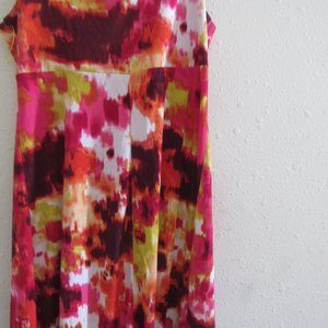 Tied-Dyed dress size 4 Beaded waist band in the front. Tie back. Built in Bra Sleeveless Red, Yellow, Orange and White