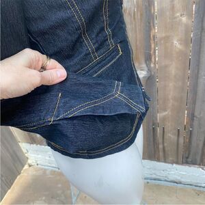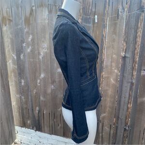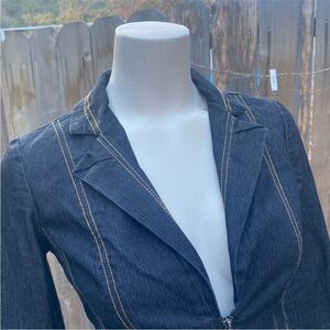 Chic denim jacket by Bisou Bisou. Features beige stitching. Ideal for versatile styling.