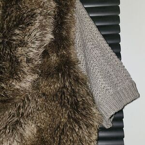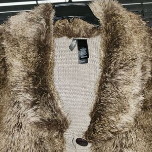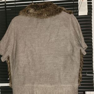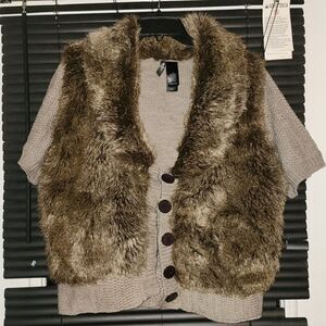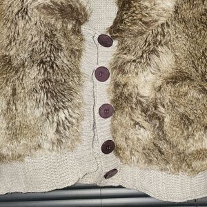 Short sleeve 5 button loop closure faux fur sweater