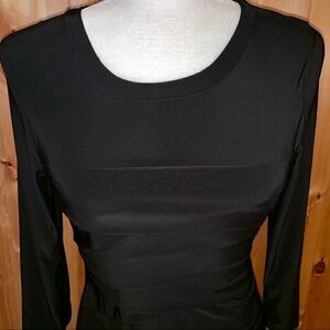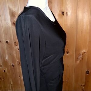 Bisou Bisou black long sleeve bodycon dress with tiered layers size 8. Fully lined. Polyester/ spandex. Very figure flattering. EUC. Length 33 inches. Chest 16.5 inches. Waist 14 inches.
