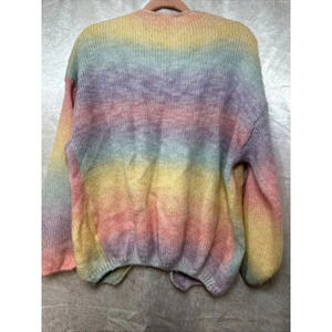 Bisous Project Wool Blend Pastel Rainbow Fuzzy Knit Open Cardigan Soft Cozy