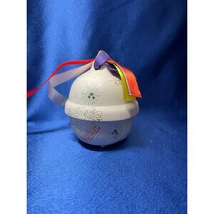 Bisque Ceramic Collectable Japanese Bell and Colorful Ribbon