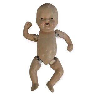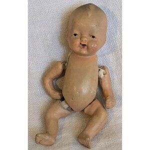 Bisque Jointed Baby Doll Japan Stringed Stamped Mouth Miniature Porcelain Vtg 4"
