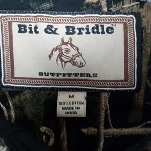 Bit & Bridal Outfitters Mens Shirt Black Button Down Deer Print Hunting Medium