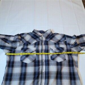Bit & Bridle Blue Plaid Pearl Snap Button Down Long Sleeve Western Shirt Size XL