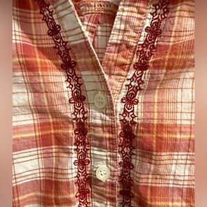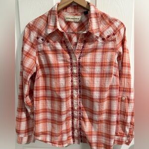 Bit & Bridle Red and White Plaid Shirt Embroidered Detail Western Cowgirl Rodeo